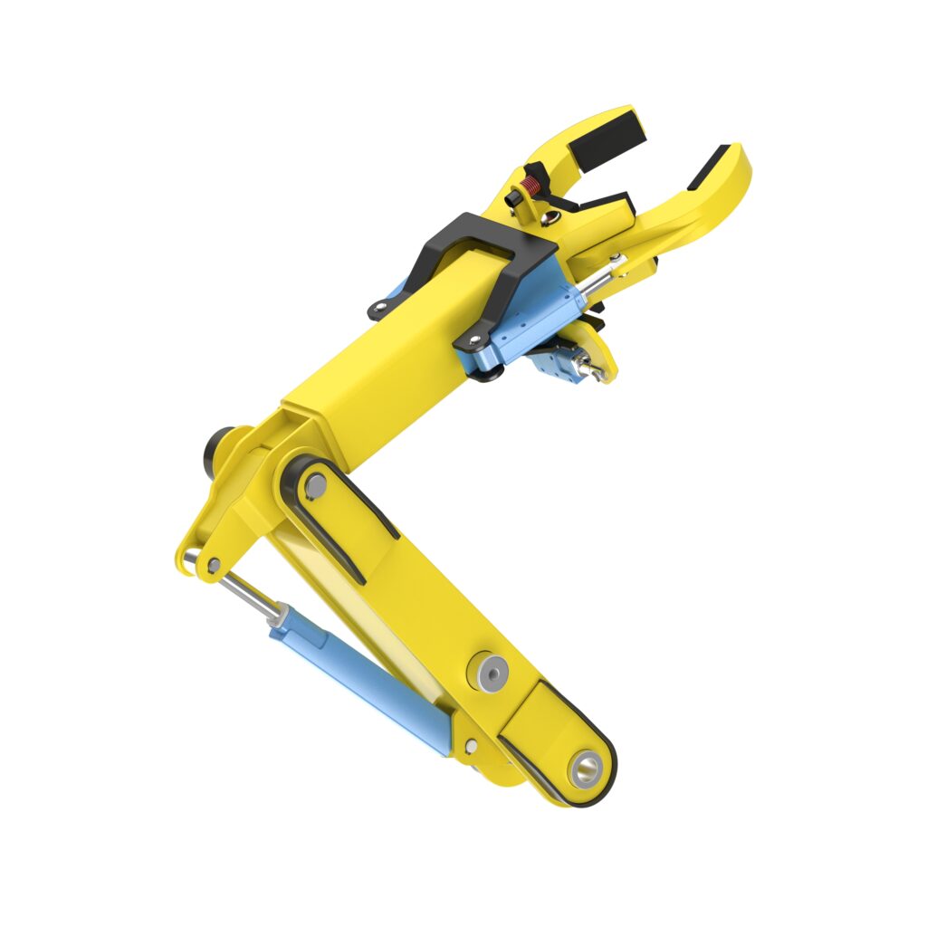At the heart of our unmanned ground vehicle system is a specialized robotic arm engineered specifically for roof support prop handling and installation in confined underground mining environments, operated entirely through remote control.